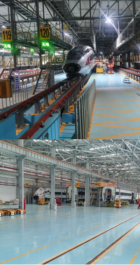 廣州動車段高級修擴建工程位于廣州市番禺區鐘村鎮與佛山市順德區北窖鎮交界地帶的古東村、古西村至三桂村境內,距廣州南站6km,主要工程內容包括新建4線高級修庫、6線整車調試庫、6線單元調試庫、裙底板檢修存放庫,構架檢修庫、配件庫、擴建轉向架檢修庫,改造2線三級修庫、局部改造既有四五級修庫,以及配套相關設施;新建高級修車載信號設備檢修車間;新建動車段110KV配電所等。改擴建完成后,2020年檢修能力達到配屬400組動車組的高級修屬.